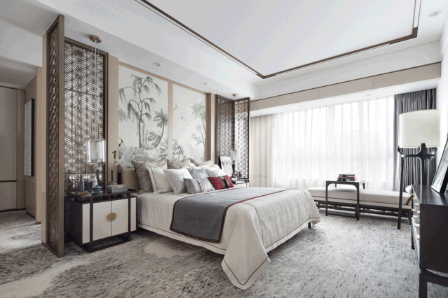 低調冷靜的高級灰上面有規則的分布著干凈利落的斜紋,整體看上去優雅高級,湊近了去撫摸其竹木面板,質感十足,與整體空間搭配盡顯高級感。
