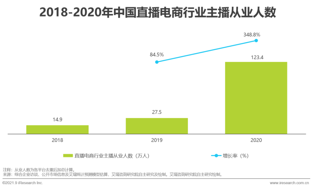 直播電商行業(yè)主播的從業(yè)人數(shù)也在不斷增長,截至2020年底,行業(yè)內(nèi)主播的從業(yè)人數(shù)已經(jīng)達(dá)到123.4萬人。