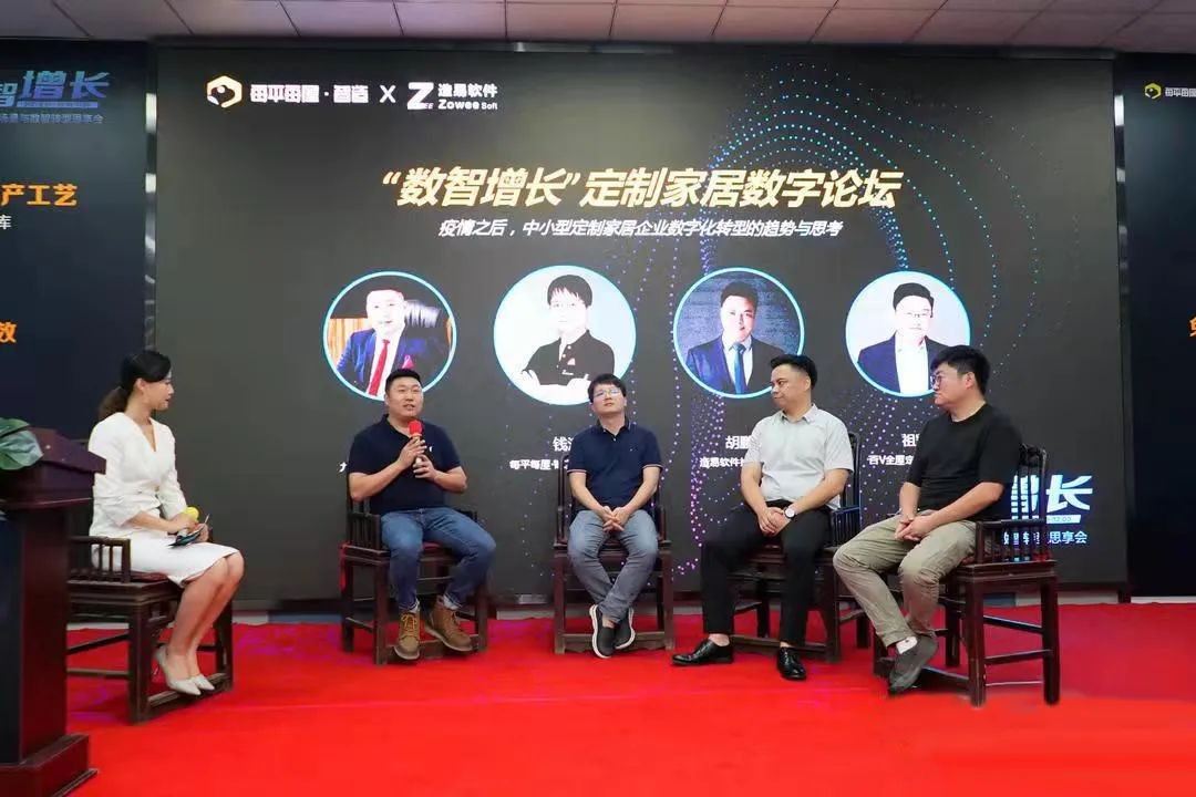 活動尾聲,九天智能家居COO茍汪、造易軟件執行總裁胡鵬、每平每屋制造業務負責人錢江、百V全屋定制營銷總監祖凱,圍繞大家關心的企業定制交付、數字化流程等問題進行交流和溝通,通過專業的解答和經驗分享,為企業指出了一條科學的、數字化的轉型之路。