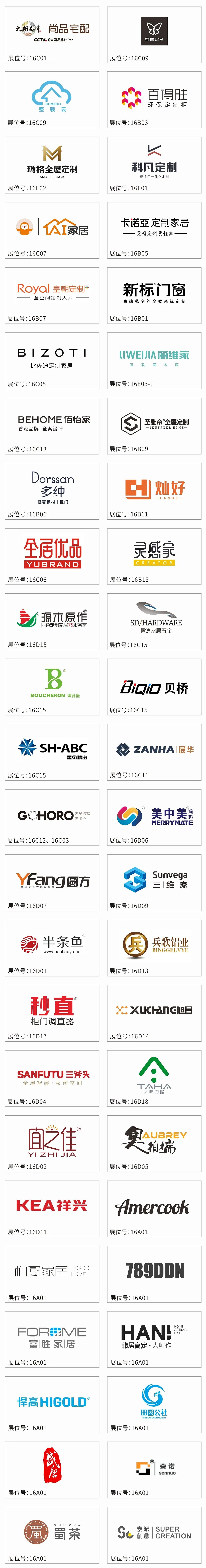 在16號館集結(jié)了全屋定制、五金、板材、裝飾、膠水、鋁材、軟件、設(shè)計平臺等一批優(yōu)秀企業(yè),以及主題展區(qū)。1.全屋定制:尚品宅配、維意定制、HOMKOO整裝云、百得勝、瑪格、科凡、詩尼曼/AI家居、卡諾亞、皇朝、新標(biāo)、比佐迪、麗維家、佰怡家、圣雅帝、源木原作。(1)板材和裝飾材料和膠水涂料:展華、國皓板材、美中美、安鑫、多紳、燦好。(2)專業(yè)軟件服務(wù)商:圓方軟件、三維家、半條魚。(3)鋁材和五金品牌:兵歌鋁業(yè)、秒直、恒泰萬禧、旭昌、三斧頭、太皓、宜之佳、奧柏瑞、祥興、全居優(yōu)品、寶詩龍、貝橋電子、星徽精密。