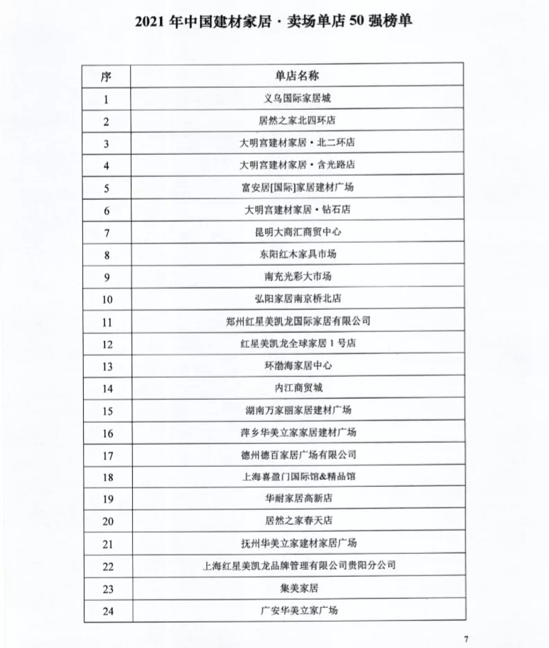 根據(jù)企業(yè)上報的統(tǒng)計數(shù)據(jù),以2020年全年銷售額為主要參考指標(biāo),進(jìn)行了2021年度中國建材家居·賣場單店50強(qiáng)排序和中國建材家居·批發(fā)市場10強(qiáng)排序,現(xiàn)發(fā)布如下: