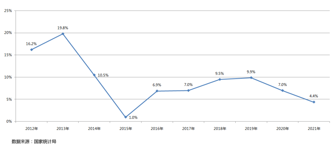 2012—2021年全國房地產開發(fā)投資增速