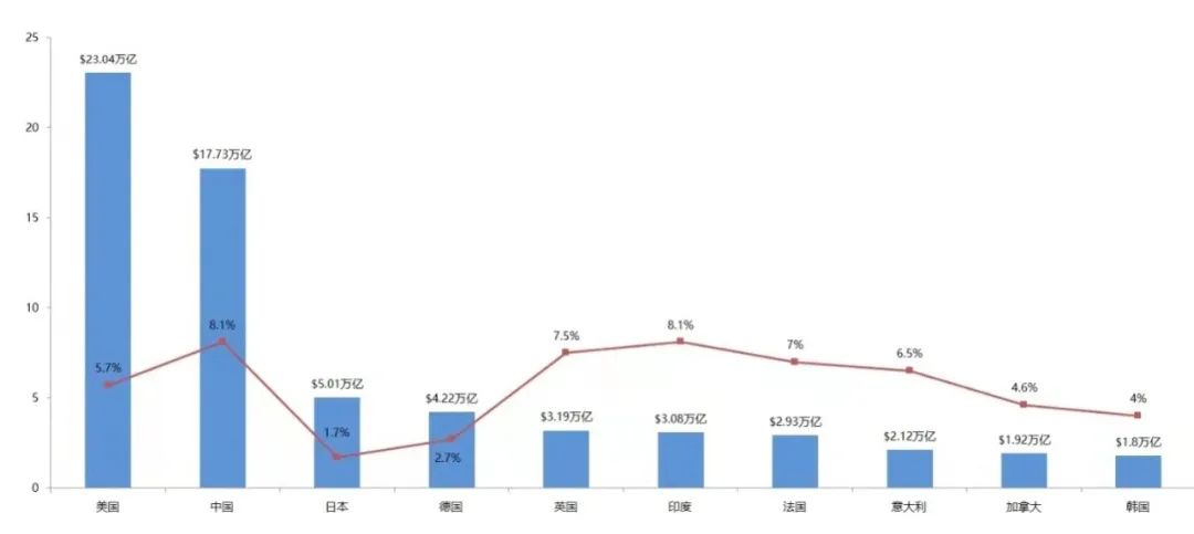 2021年全球前十大經濟體GDP總量及增速