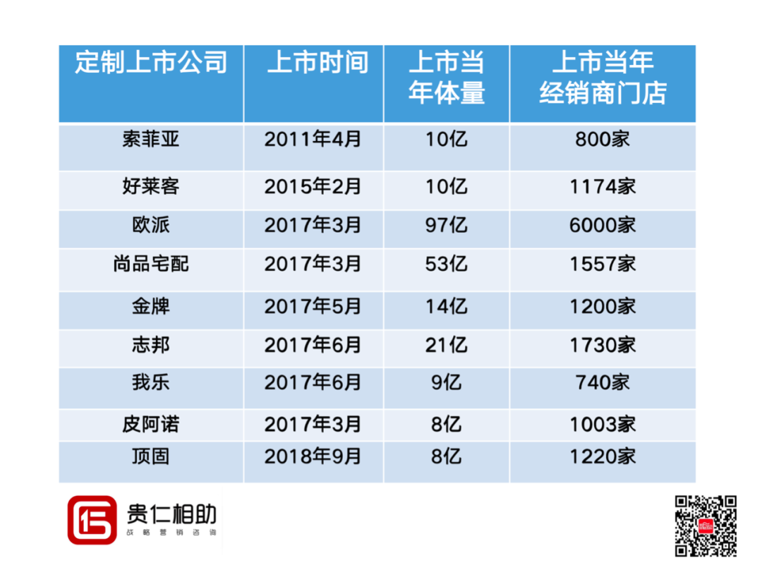在大約5年后的2017年,迎來了中國定制家居的上市高潮,有六家定制家居品牌同年上市,成為中國定制家居行業的最高光時刻!見下圖。