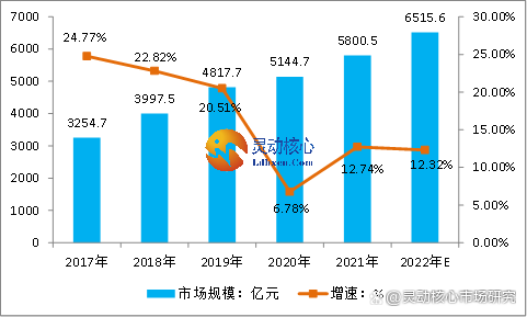 數據顯示,2021年我國智能家居行業市場規模為5800.5億元,同比去年增長12.74%,預計2022年我國智能家居市場規模約達到6515.6億元。