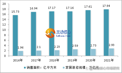 家居行業屬于房地產后周期行業,與房地產行業景氣度緊密相關,主要需求來自于房屋裝修,包括新房和二手房。2021年,房地產開發企業房屋施工面積975387萬平方米,比上年增長5.2%。其中,住宅施工面積690319萬平方米,增長5.3%。房屋新開工面積198895萬平方米,下降11.4%。其中,住宅新開工面積146379萬平方米,下降10.9%。房屋竣工面積101412萬平方米,增長11.2%。其中,住宅竣工面積73016萬平方米,增長10.8%。