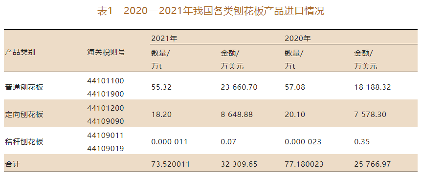 由于國內外刨花板產業發展變化及國際新冠肺炎疫情影響,2021年我國刨花板進出口貿易較往年發生明顯變化。2021年我國刨花板貿易雖仍以進口為主,但進口量有小幅下降,進口金額和平均單價增長顯著;2021年我國刨花板出口勢頭強勁,出口量和金額較上年同期大幅上漲,創下近10年來新高。隨著國內刨花板生產技術的不斷提升,優質刨花板產能增加,未來我國刨花板的出口潛力長期看好。