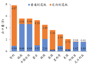 圖6 2021年我國刨花板出口量排名前10國家/地區的出口產品類別