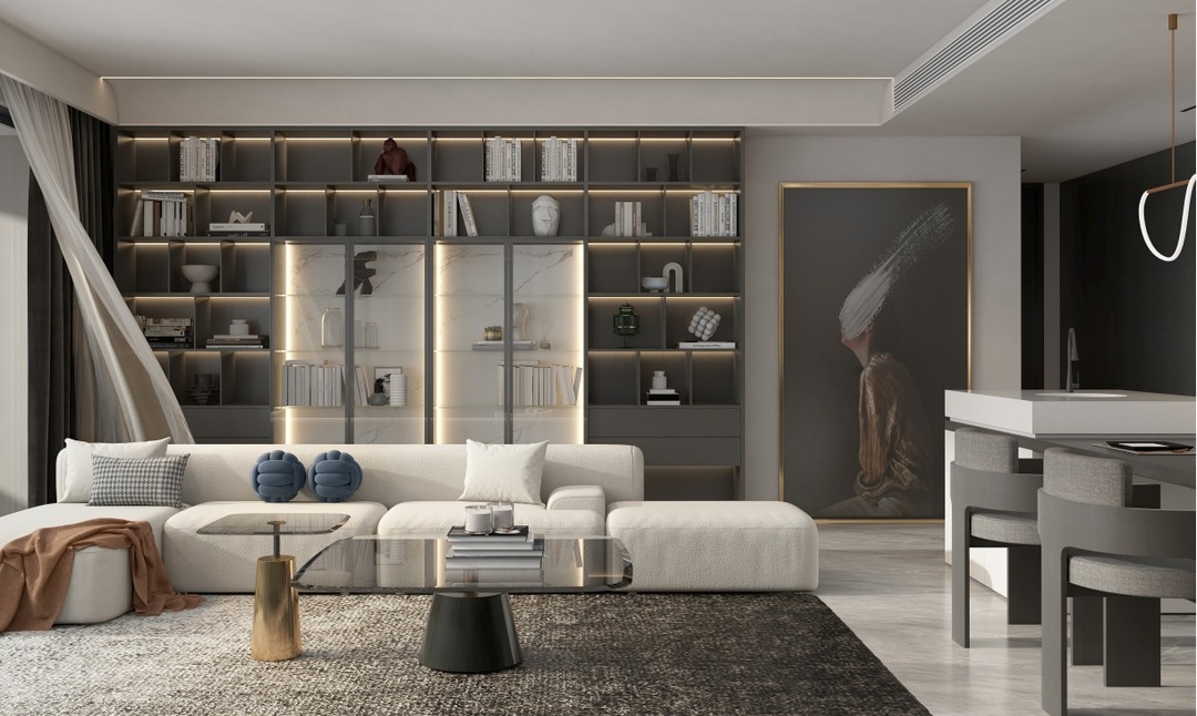 盈康世家可定制門墻一體化定制(木門、墻板、合金門同款同色),讓美學與工藝完美糅合,整體空間和諧有趣,有效提升空間整體美感。