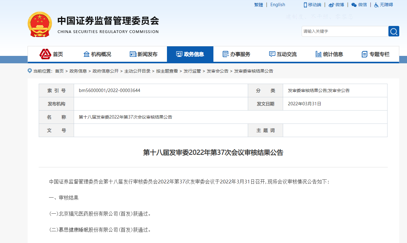 3月31日晚,證監會發行監管部公布第十八屆發審委2022年第37次會議審核結果公告,慕思健康睡眠股份有限公司首發申請獲證監會通過,擬在深圳證券交易所主板上市。