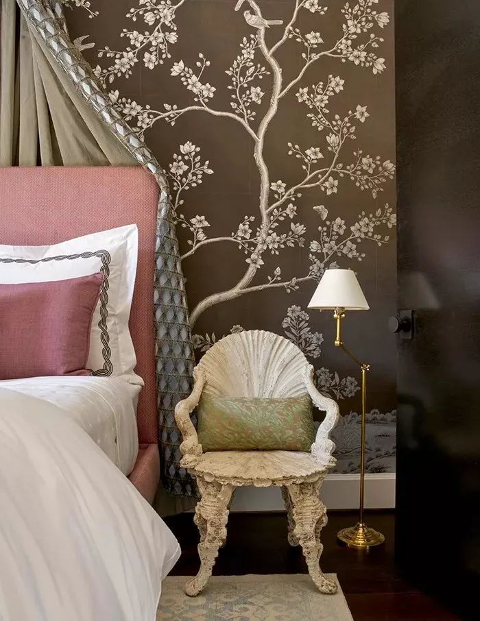 植物花卉布藝的大量注入,自然靈動,彰顯輕柔質感。銀樺色作為背景用色,淺淡的色澤令花卉布藝重點凸顯,視線進退得宜。金色裝飾可提升尊貴質感。家具方面多使用古典家具,散發典雅氣息,培養溫婉嫻靜的仕女氣質。