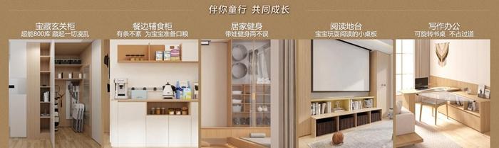 晴川木語——針對新手爸媽,主打收納、陪伴、安全與玩耍。自然治愈的原木風(fēng),全屋柜類斜切免拉手、可開合圓弧門,搭配柔和線條的配套家具,細(xì)心呵護(hù)避免孩童磕碰。玄關(guān)柜藏起一切凌亂更清爽;用餐邊輔食柜有條不紊為寶寶準(zhǔn)備口糧;健身收納區(qū)讓帶娃健身兩不誤;閱讀地臺給寶寶足夠的玩耍閱讀空間;可旋轉(zhuǎn)書桌不占過道,在小家也能舒適辦公。全面兼顧家庭成員的生活、工作所需,打造與孩子共同成長的有愛空間。